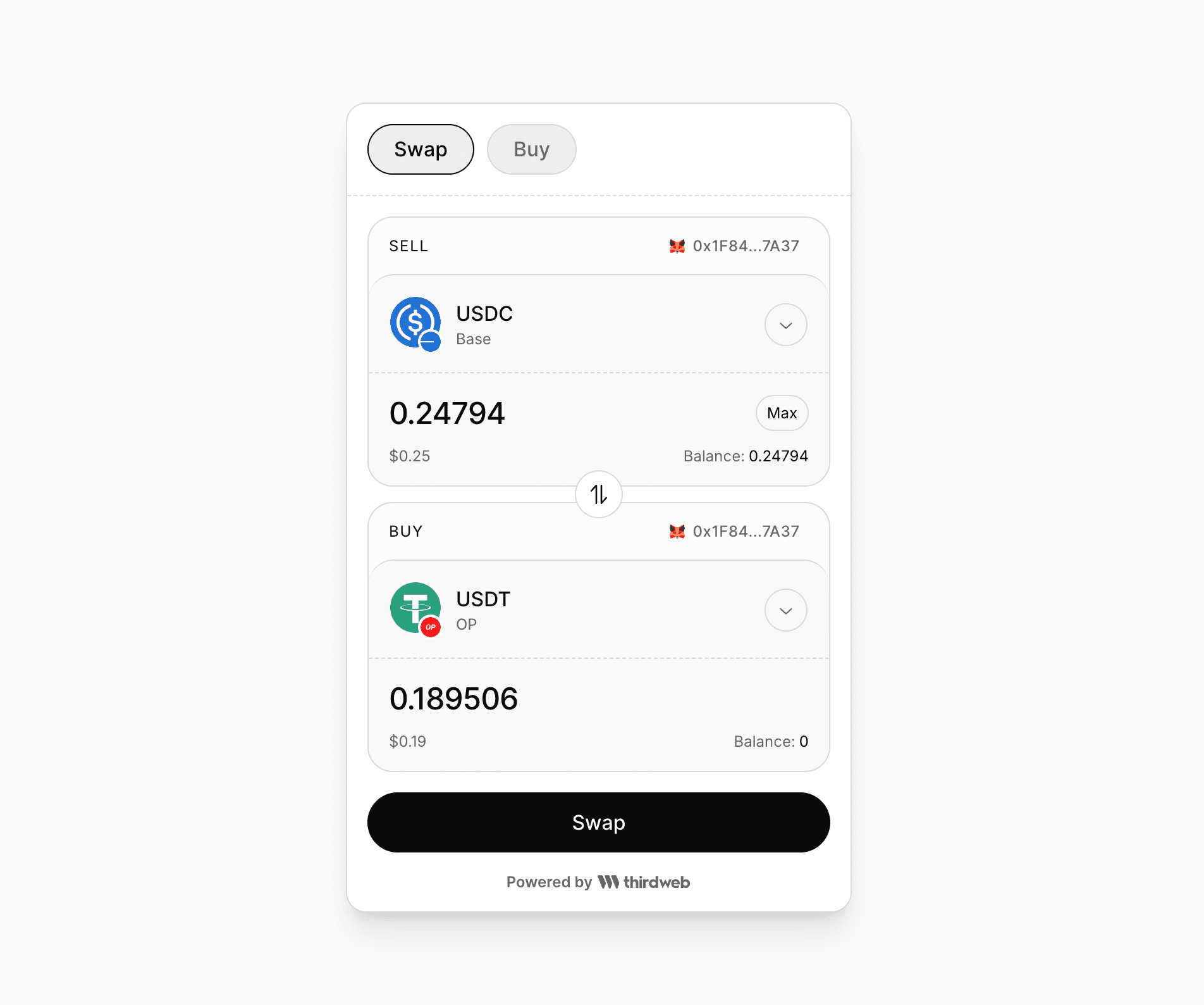 Specify the default token to be selected in the "Buy" tab. If not specified, the native token of the selected chain will be selected.